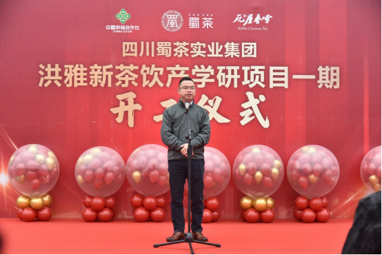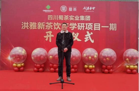儀式上,陳思遠首先對各位嘉賓的蒞臨表示熱烈歡迎并表示蜀茶集團洪雅新茶飲產(chǎn)學(xué)研項目的順利落地離不開洪雅縣委、縣政府和相關(guān)部門的大力支持,離不開洪雅茶行業(yè)同仁的鼎力相助,離不開蜀茶冷鏈物流有限公司股東的初心堅持。