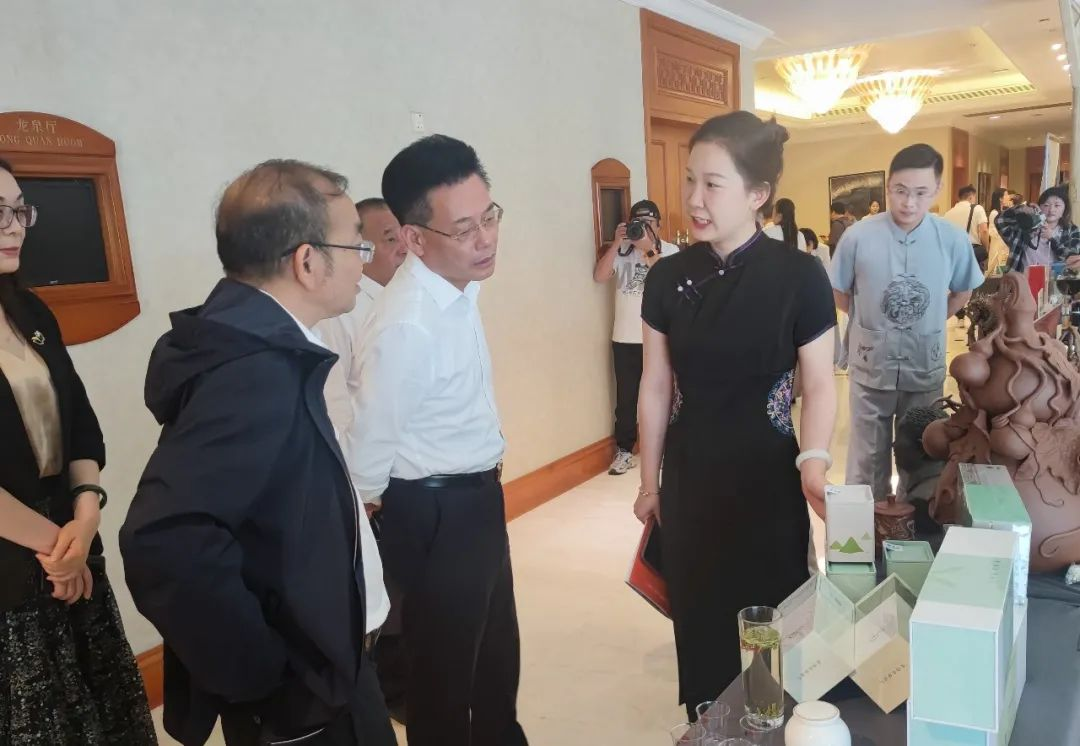 發(fā)布會(huì)開始前,卿足平駐足蜀茶場(chǎng)外展位并了解蜀茶自有茶園及蜀茶產(chǎn)品,負(fù)責(zé)人介紹到,產(chǎn)業(yè)布局名山、洪雅、平昌、通江、崇州,共擁有3萬多畝優(yōu)質(zhì)茶葉基地,鮮葉采收覆蓋20多萬畝茶葉基地,自有品牌產(chǎn)品60余種。