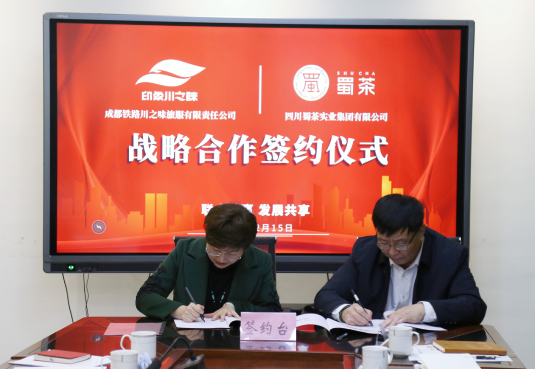 隨后,在各位嘉賓的共同見證下,蜀茶集團、成都鐵路川之味旅服有限責(zé)任公司簽署戰(zhàn)略協(xié)議,雙方將促進融合發(fā)展,推動四川茶葉產(chǎn)業(yè)煥發(fā)新的生機活力。