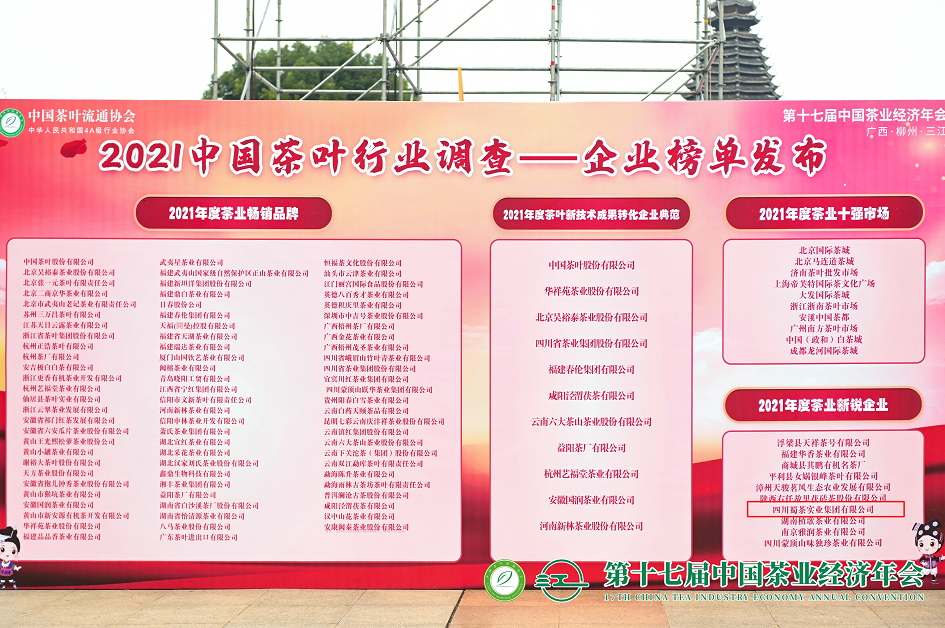 10月27日,以“三茶統(tǒng)籌 消費(fèi)振興 健康侗茶 夢(mèng)縈三江”為主題的第十七屆中國(guó)茶業(yè)經(jīng)濟(jì)年會(huì)(以下簡(jiǎn)稱“經(jīng)濟(jì)年會(huì)”)開(kāi)幕式暨2021中國(guó)茶業(yè)品牌盛典在廣西三江舉行。蜀茶集團(tuán)作為四川優(yōu)秀茶企代表和理事會(huì)單位受邀參加,并被授予“2021年度茶業(yè)新銳企業(yè)”稱號(hào)。